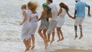 Na plažama Brazila ljudi u bijeloj odjeći skaču preko sedam valova, zamišljajući želje za novu godinu. Običaj potječe iz afro-brazilskih religija i povezan je s božicom mora Yemanjá.